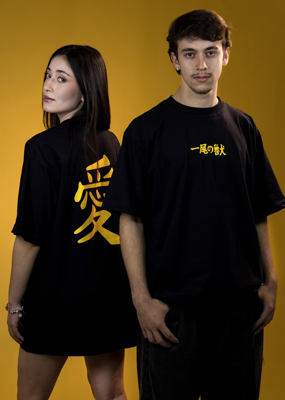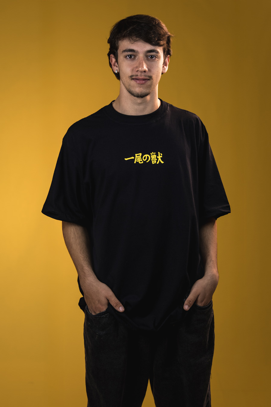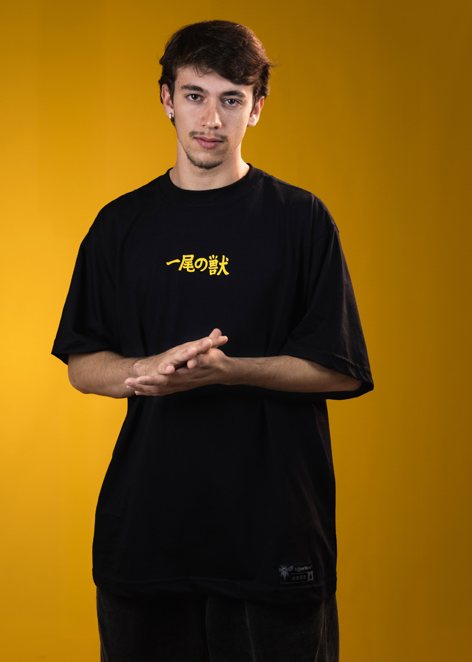 Na frente, o kanji que representa “Besta de Uma Cauda” evoca a maldição e o poder bruto que marcaram a infância de Gaara. No verso, o kanji “愛” (amor) — sua tatuagem icônica — revela a transformação: de criatura temida a guardião amado. Esta camiseta celebra a jornada de superação, lembrando que até o coração mais endurecido pode aprender a amar.