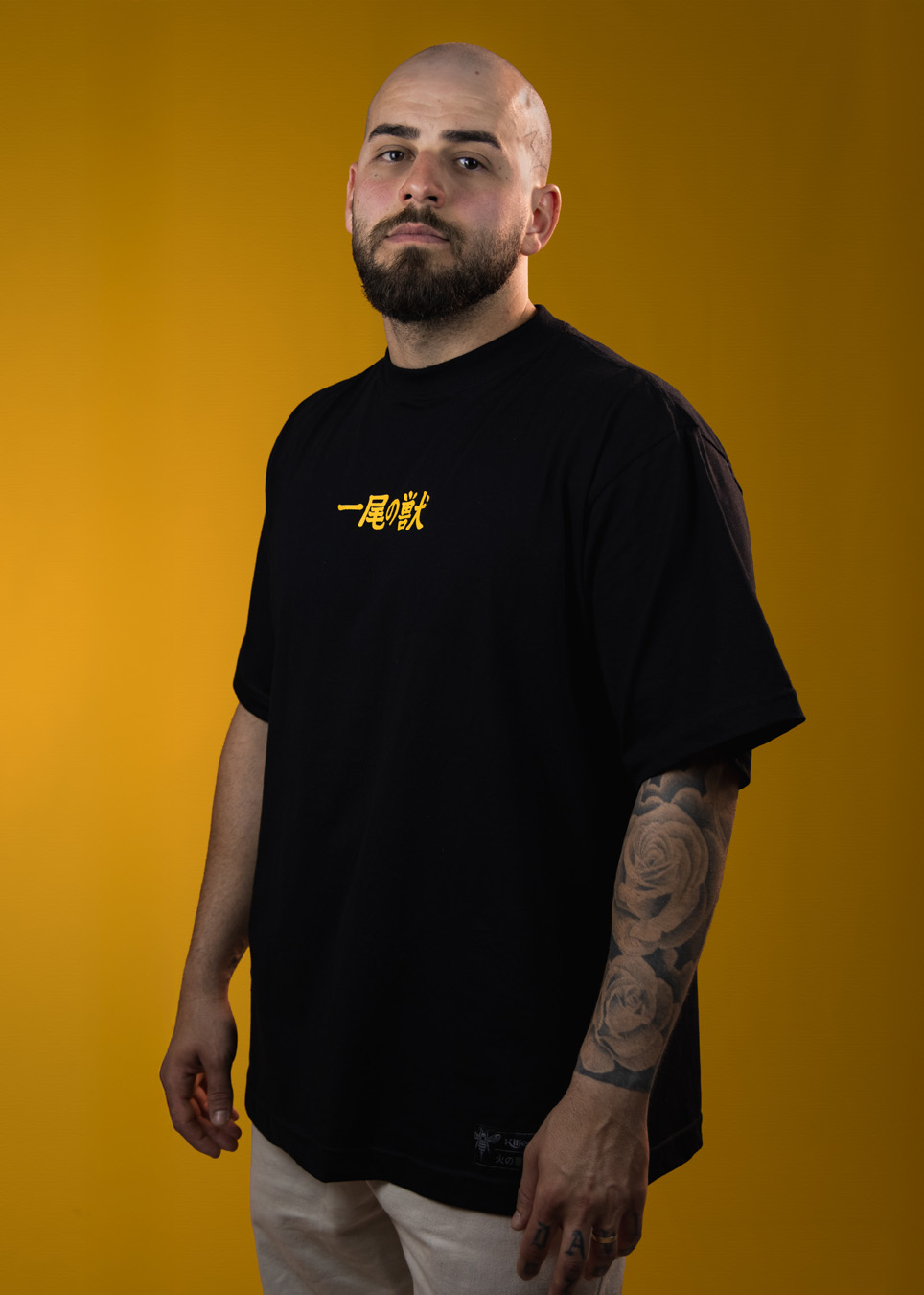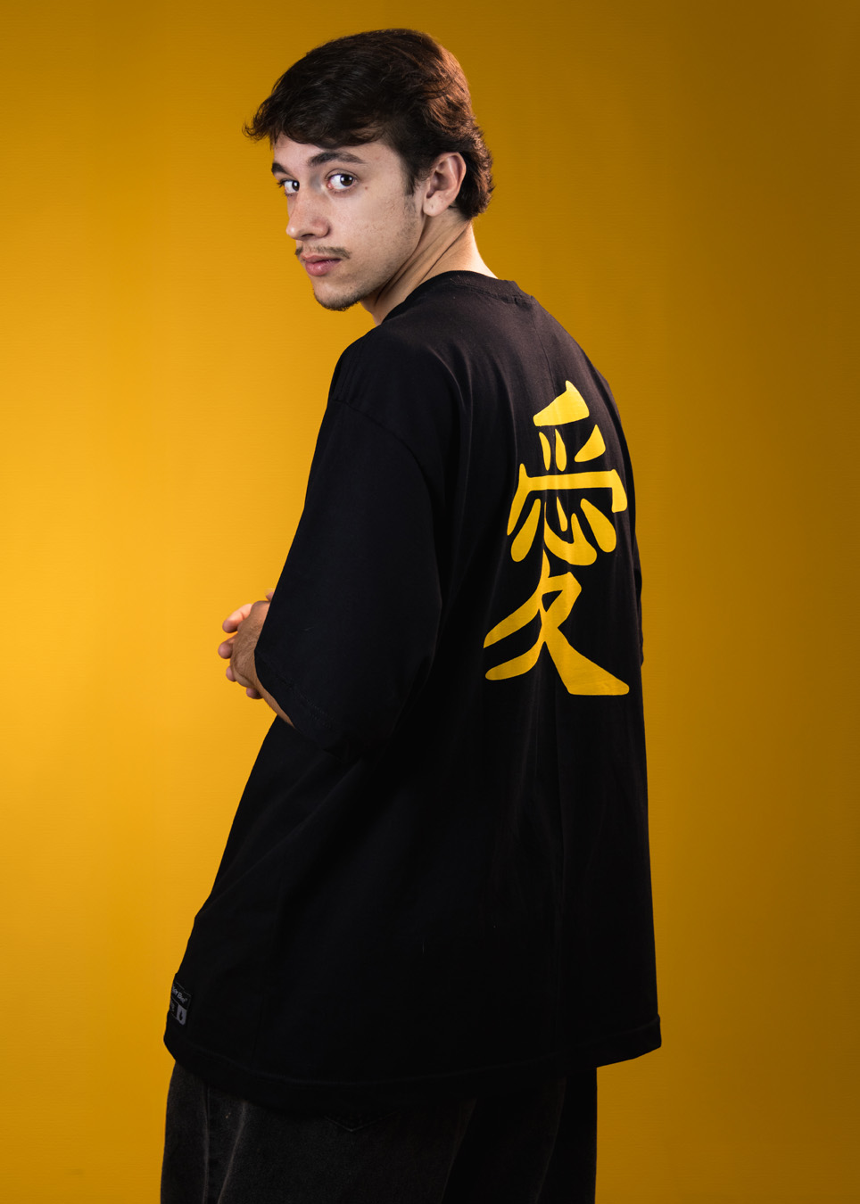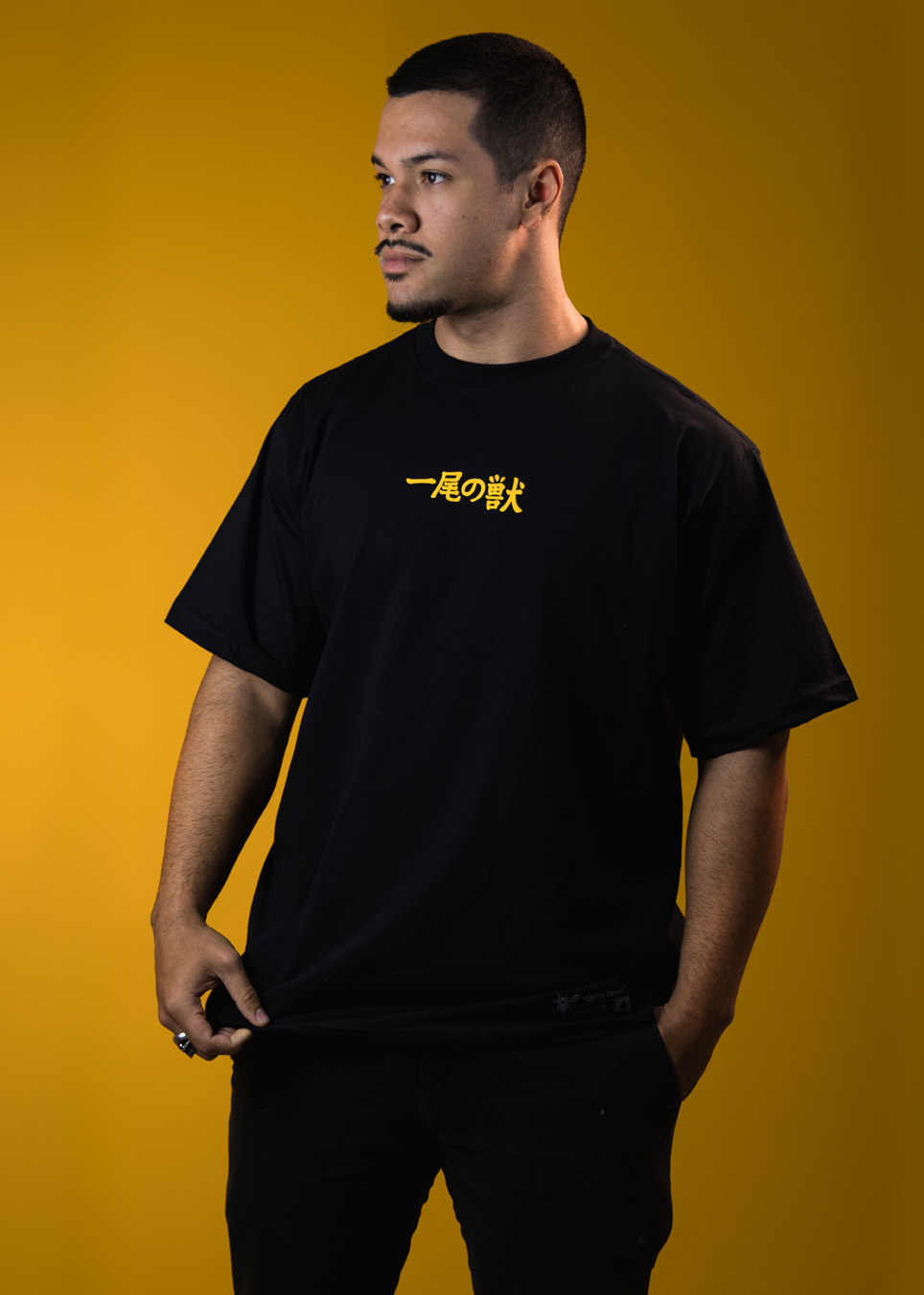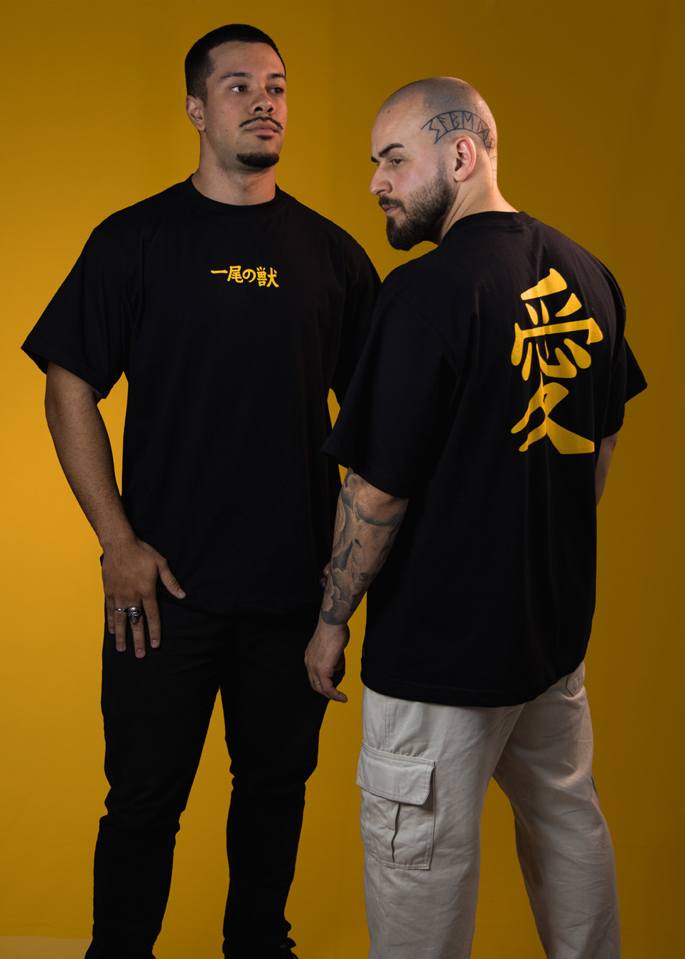 Na frente, o kanji que representa “Besta de Uma Cauda” evoca a maldição e o poder bruto que marcaram a infância de Gaara. No verso, o kanji “愛” (amor) — sua tatuagem icônica — revela a transformação: de criatura temida a guardião amado. Esta camiseta celebra a jornada de superação, lembrando que até o coração mais endurecido pode aprender a amar.